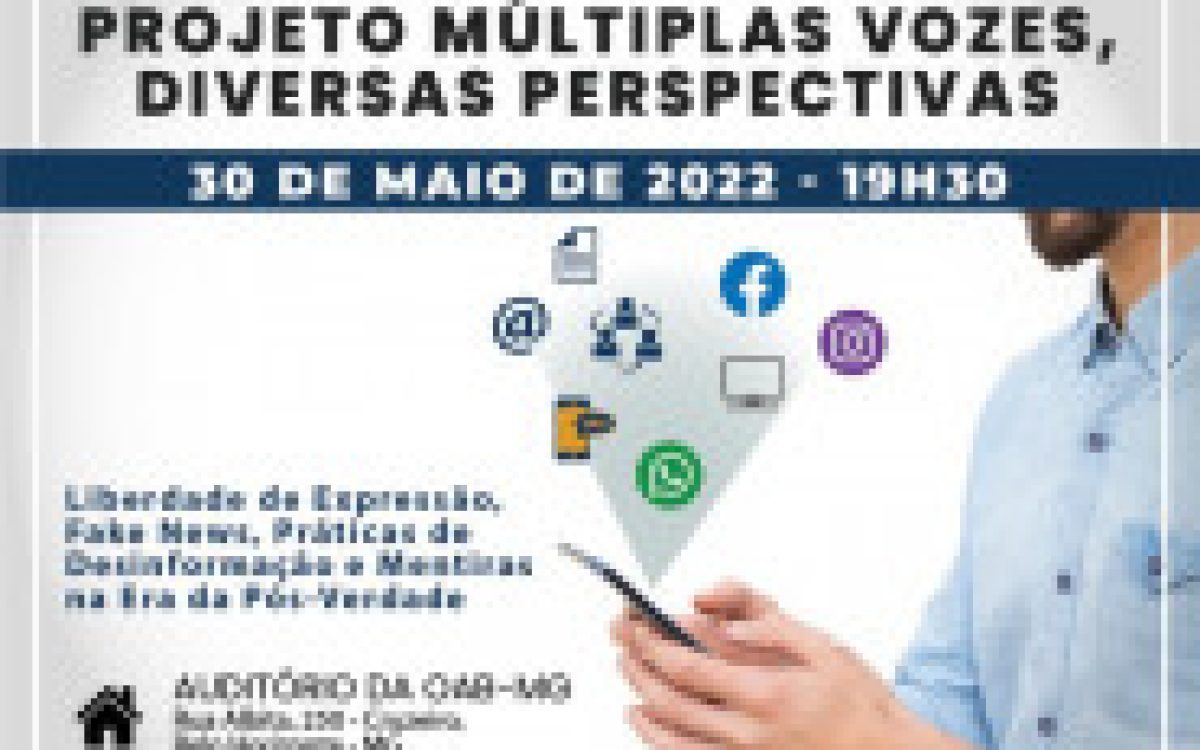Os membros da comissão de Defesa da Liberdade de Expressão da OAB/MG, Dr. Humberto Lucchesi de Carvalho (Presidente da Comissão) e Dr. Rafael Sacchetto Vieira Pinto (Secretário Geral da Comissão), que prestam assessoria jurídica ao SINDALEMG, convidam todos os servidores para o Lançamento da Carta de Princípios sobre o combate às fake news e às praticas de desinformação na era Pós-Verdade.